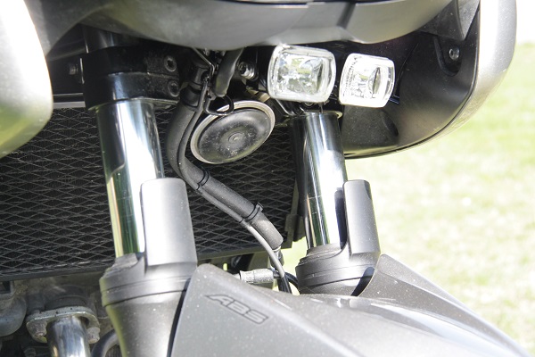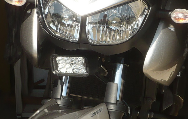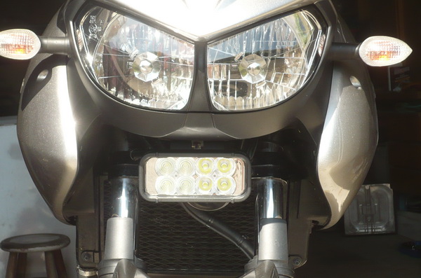 ici, le 1er montage avec 2 petits LP à iode, montés sur le T, les petits phares sont moins efficaces