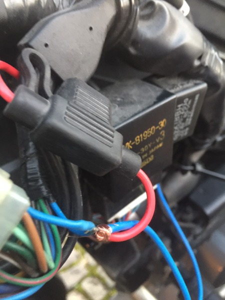 Pour le rouge c'est simple, vous le branchez sur n'importe quel cable qui ramène du 12V après contact...