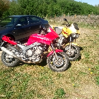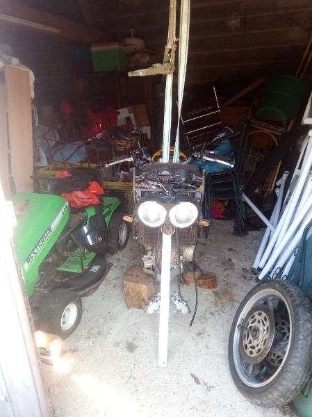 je precise que je n'ai bien sur pas de béquille centrale et vu le passage des pots sous le moteur impossible de mettre un cric dessous.