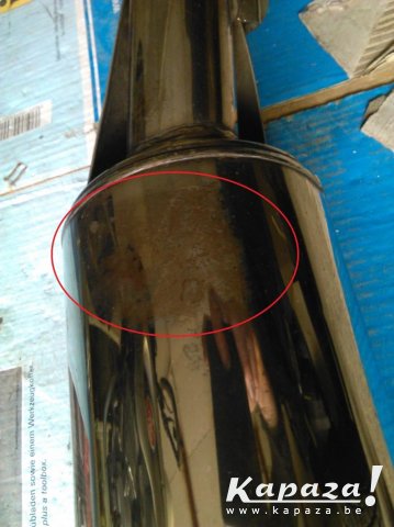 Quelques griffes sur un échappement suite à une chute à l'arrêt et comme une "brûlure" de l'intérieur à un endroit non visible une fois monté.