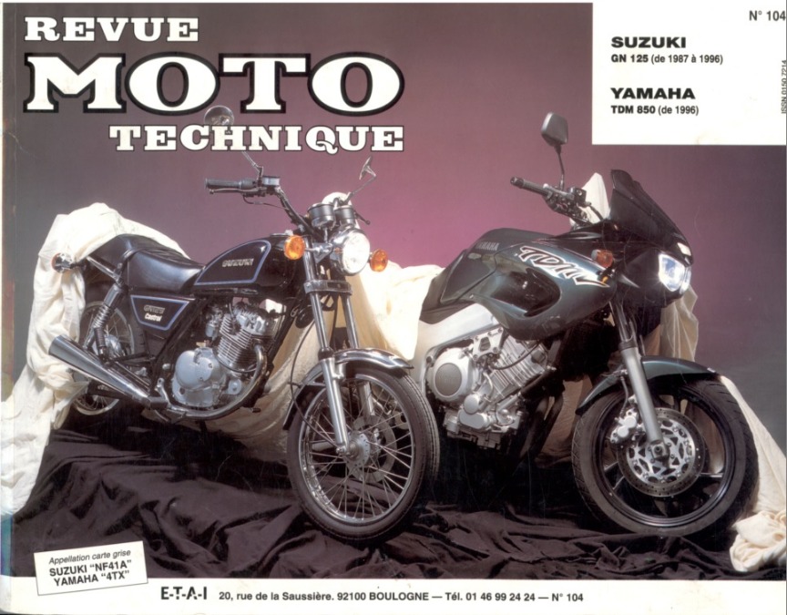 je donne contre enlèvement sur place une revue moto technique n°104 (suzuki GN 125 NF41A de 87 à 96 et yamaha tdm 850 4TX (dès 96)