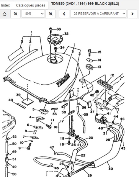 Bruno, les sorties de réservoir directement soudées sont très rares sur les 3VD (filtres non nettoyables) , ils ont vite été remplacés par une plaques avec filtres maintenue par 2 vis (voir schéma Yamaha ci dessous).
