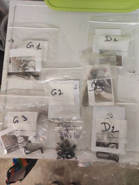 Chaque patte et visserie est dans un sachet individuel avec photo faite avant démontage, pour faciliter le remontage.