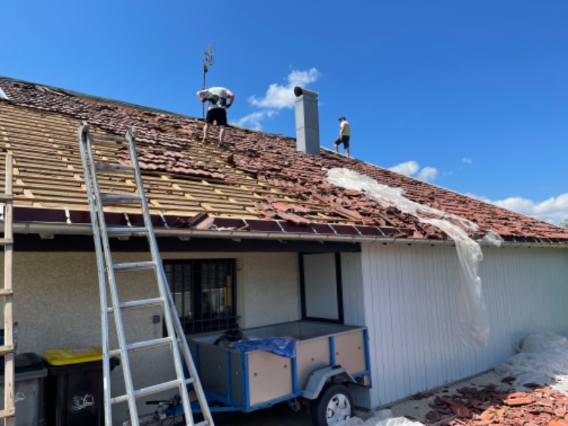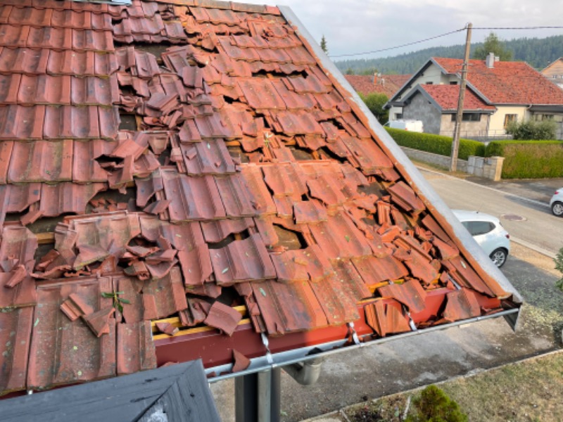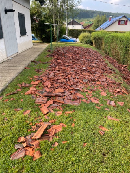 Pourtant, c’est une charpente á l’ancienne avec chevrons, volige, toile goudronnée, lattes et pour finir, les tuiles, elle a résisté á un mètre de neige mouillée mais là, rien n’a tenu même les fermes qui ont plus de 200 ans.Le problème des constructions de ces dernières années pour faire baisser le coût de la construction c'est directement les liteaux sur les chevrons en cas de tempête on retrouve on retrouve la toiture dans la salle à manger à l'époque on mettait de la volige une toile goudronnée ensuite les liteau puis la tuiles cela rendait la maison plus étanche bon courage