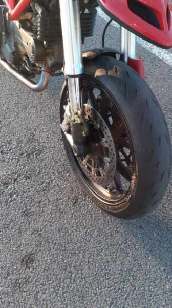 j'ai pu rentrer quand même, doucement, et un copain m'a changé la fourche. Il en a adapté une d'une hypermotard 821 car on en trouvait pas pour 796.