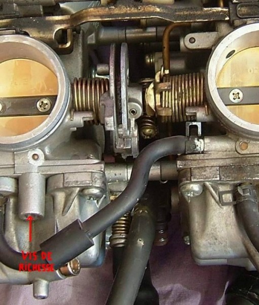 J'ai changé le filtre à air, mais je n'ai pas trouvé les vis de richesse. Je me basais sur cette photo: