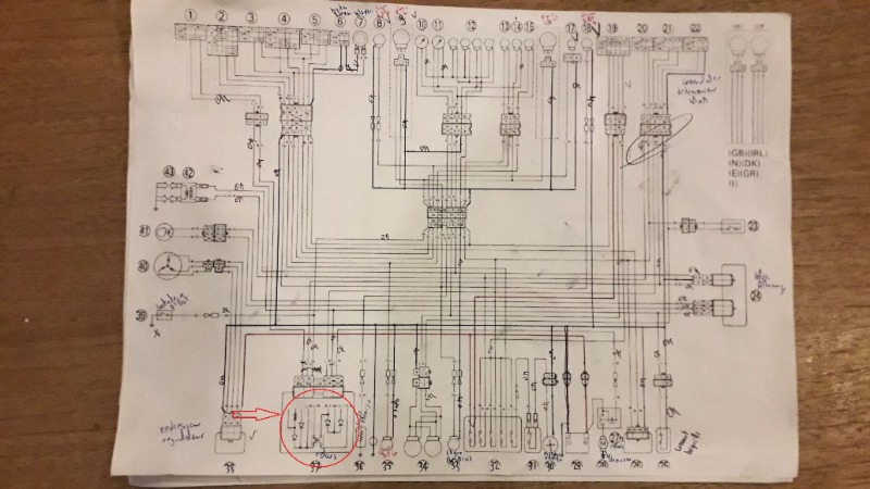 Vas falloir que tu cherches alors, c'est sous le réservoir mais moi, je ne me rappel plus où exactement (comme dit avant).