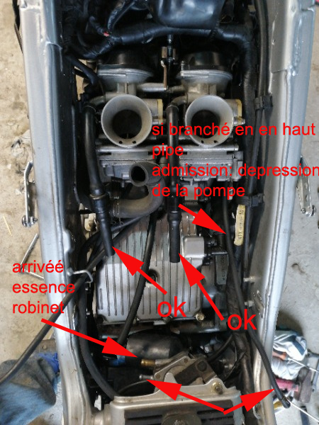 Par contre j'ai un soucis pour le branchement des durites de carbu, robinet d essence et petite pompe à vide