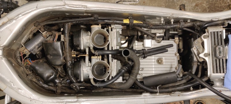 Sur la photo en PJ c'est visible de part et d'autre des carbus et jusqu'à la fourche. Par contre rien de visible sur les faces extérieures.