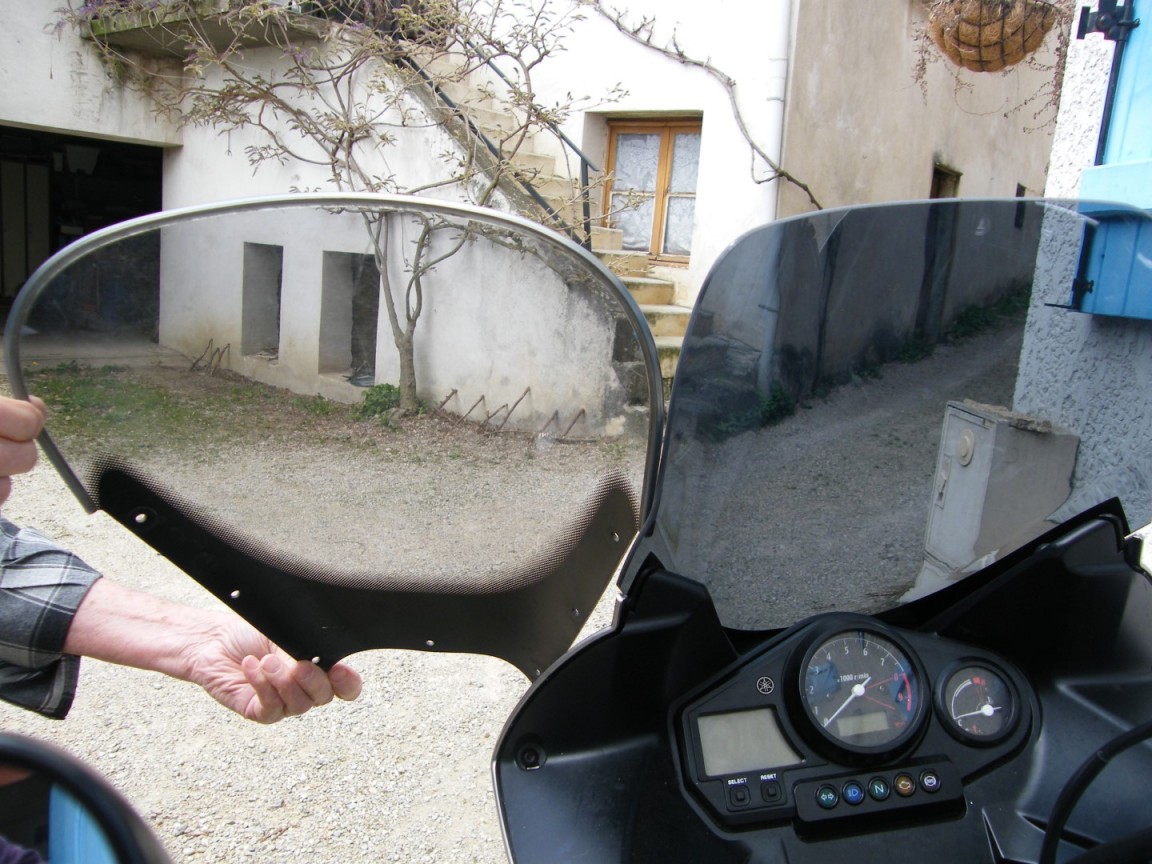 Moi j'ai mis la bulle haute +15cm de yamaha, elle est très jolie, mais j'en ai marre de prendre autant de turbulence et remous dans mon casque et j'ai un S2 schulbert.