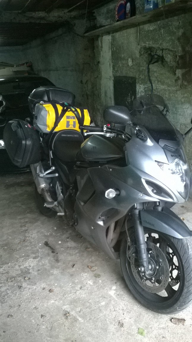 Et le top case de 37l est vraiment petit , j'avais le même sur le TDM , mais les valises cavalières du TDM plus grandes que les valises du GSX compensaient.