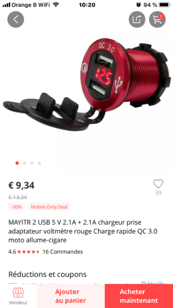 Sinon pour continuer dans le bricolage, je vais démonter et réparer l'ancien allume cigare et l'installer sous la selle en le raccordant au + permanent du relais. Ce qui me permettra de recharger éventuellement mon portable pendant une pause sans le contact et en le laissant sous clés.