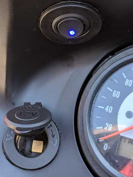 L'avantage de l'interrupteur sur le +12 après contact, c'est que je peux connaitre la tension batterie avant de mettre le contact (utile pour savoir si je dois lui mettre un coup d'Optimate) ou si je veux recharger mon portable à l'étape ou à une pause.