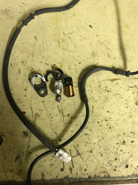 ABS arrière et bien comme a dit le chef faut pas avoir deux mains gauche et un minimum d'outils ; j'ai réussi à le sortir mais non sans mal enfin de compte comme la flasque est en aluminium et quelle est soumise aux intempéries et bien elle fait un espèce de salpêtre et ça coince le capteur
