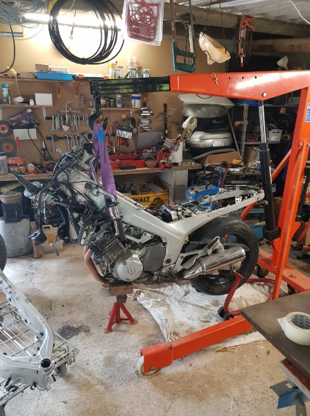 hier j'ai fais le jeu aux soupapes sur une FJR AS (donc boite robotisée) , pour faire le jeu, j'enlève la boite a air, le mécanisme de selection qui se trouve devant le filtre à air  , rampe injection, radiateur, echappement collecteur et je bascule le moteur sur l'avant (après certain sont surpris du prix de la révision...) , je regarde les jeux n'ayant pas d'historique récent, tout est ok (les mégas boules, tout ça pour rien !) , je remonte.