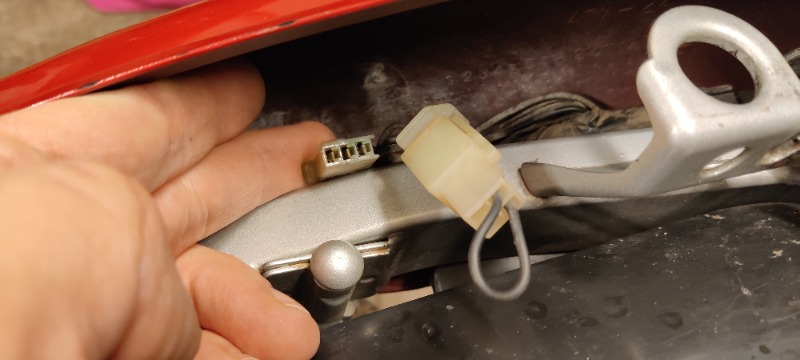 Pas vu de fiche dispo sous la selle... j'y retourne Édit : c'est la fiche 3 broches sur la photo en PJ ?