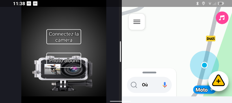 1. Ouvrir les 2 applis désirées, dans mon exemple waze et camsam