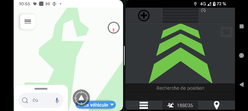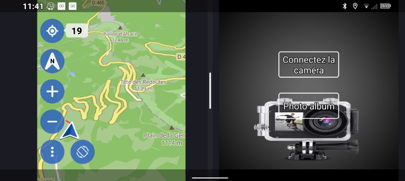 Et voilà, les 2 applis sont affichées, ça fonctionne téléphone vertical (une au dessus, l'autre en dessous) ou horizontal avec la rotation automatique (1 à gauche, l'autre à droite).