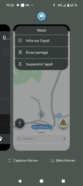 vous noterez que waze et liberty rider restent actifs meme si plus affichés à l'écran (icones dans le bandeau)