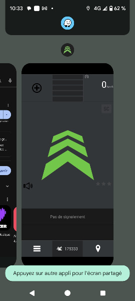de plus quand vous avez waze affiché l'icone dédié vous permet de rouler en musique (pour ma part c'est amazon musique) si vous ecoutez la radio préférez une appli (radio player etc...) car la radio incluse dans les systeme audio des casques reste assez moyenne.