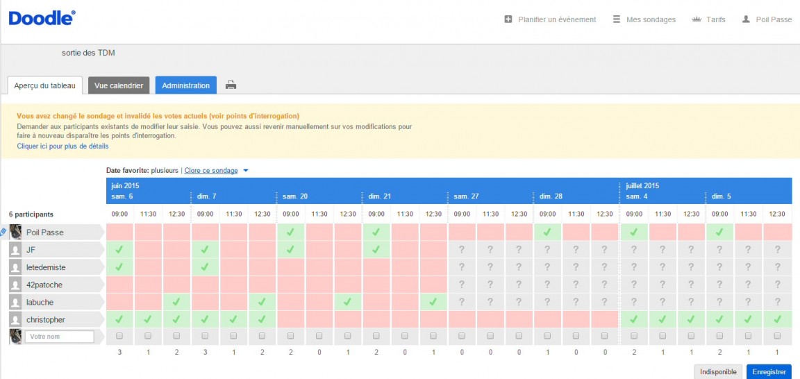 Je regarde une autre date sinon vous la faites sans moi cette sortie; je ne suis pas indispensable...