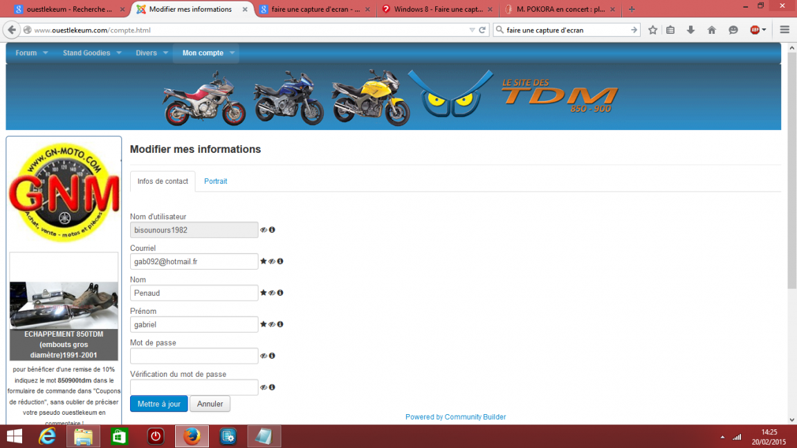 Cliquant sur l'onglet mon compte, je ne trouve plus la page où on change sa signature