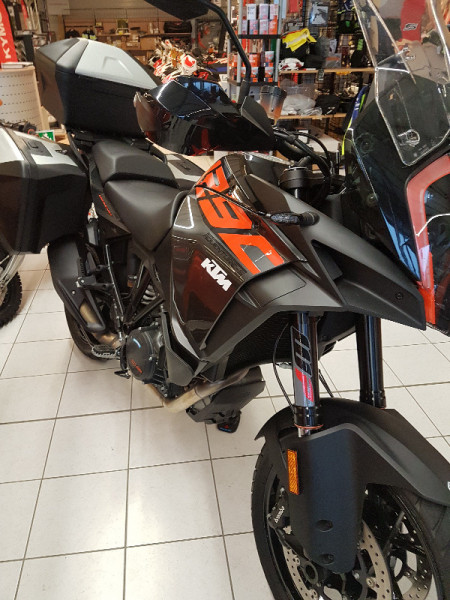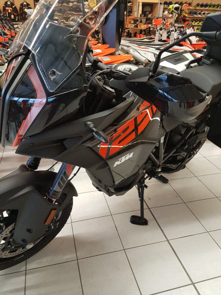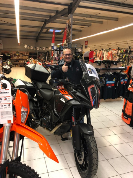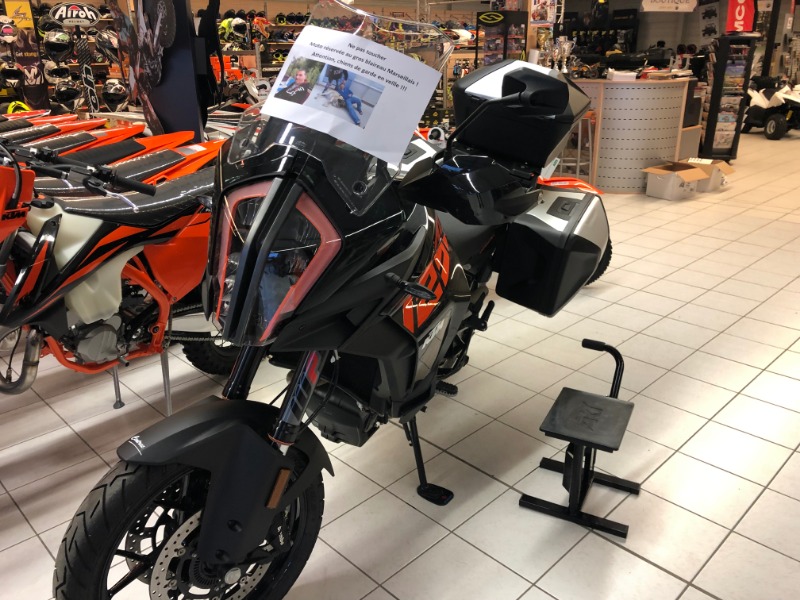 j'ai donc posé l'affiche, ajouté un tabouret pour qu'Eric puisse monter sur la moto (il ne s'était pas vanté que c’était un nain !) , j'ai caressé sa 1290... :oops: c> c> c> , le vendeur était plié de rire.