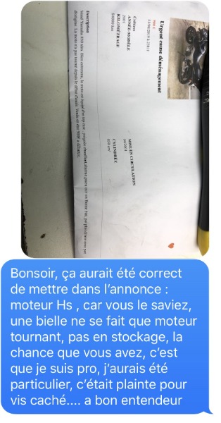 j'ai fais ce post, ce n'est pas pour me plaindre, mais pour prévenir , car un particulier qui pense faire une bonne affaire, là, il est dans la merdouille !