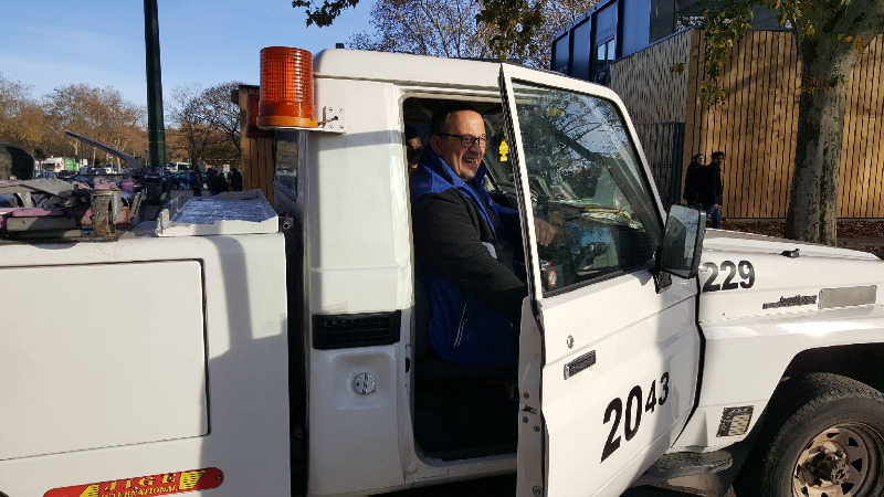 plutôt que de prendre un taxi pour faire les 10 kms, un grutier congolais m'a proposé de m'y emmener , super sympa, on a bien rigolé, sauf quand il fallait freiner d'urgence, tellement ça freine pas, il s'aidait du frein à main !