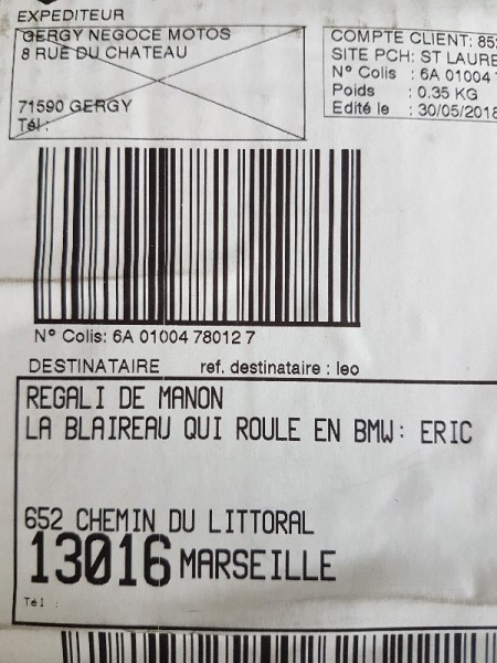 c'est vraiment un boulet d'ailleurs je comprend pourquoi il a étais élu boulet de l'année ce petit nainculé alors voila vendredi le facteur arrive tout fier et me dis bonjour j'ai un colis; et moi comme un con je lui dis c'est pour qui ? et ce cannard me répond c'est pour monsieur BLAIREAU je prend le colis et voila ce que je vois