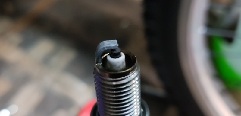 c'est blanc, les bougies sont neuves , mais comme la moto est sur nourrice , je ne peux pas la faire rouler ... Il commence a avoir un dépôt marron sur la céramique.