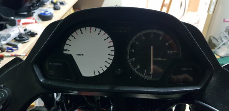 génial ! Maintenant remontage des carénages et stickers !!!! et elle sera opérationnelle .Bon je vous explique rapidement , j'avais énormément de mal a régler les carbus ... gicleurs 42 / 142 elle tournait bien mais bougies noirs , puis gicleur 135 / 37.5 puis au final 137.5/37.5 mais rien ne changeais , j'avais des pétarades de temps a autres dans les carbus et un carbus qui avait du mal a se régler , puis la pompe a dépression qui tournait mal ...
