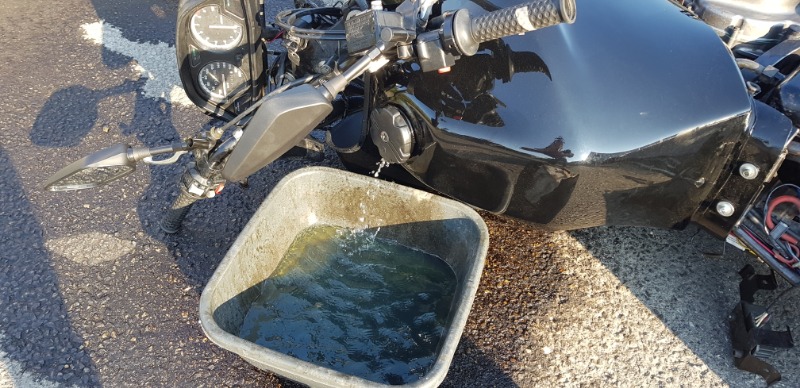 bon bas au moins , j'ai pu prendre des photos du carter huile qui est propre :x .... j'ai perdu 10 litres essences , et heu un sélecteur et une béquille hs :x super la journée !!! ah oui la fourche , bas heu , je crois quel est a regler maintenant !!!