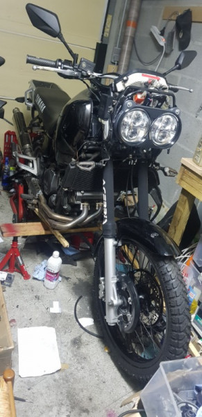ouais lol , suite au prochaine épisode , bequille trouvée .. selecteur on va regarder un autre systeme ... recentrage de la fourche au passage et vidange maintenant ... puis bas on va rouler pour voir si y'a du mieux , si je vois que c'est trop dangereux je change les pneus et si j'arrive pas a trouver bas heu , on avisera ... peut etre trouver moins lourd expldr