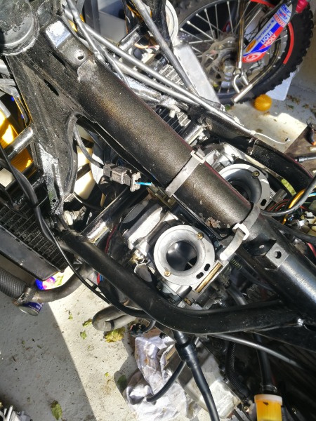 J'ai oublié de serrer le câble d'accélérateur au niveau des carbus et celui ci c'est barré donc retour a la maison en galérant bien et en coinçant la gaine ou je pouvais pour avoir un semblant d'accélérateur