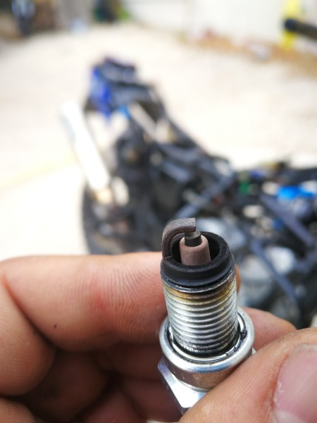 et la donc il y a trop d'essence :x noiratre sur le rebords de la bougies :x et la vis donc on rajoute de l'air ...