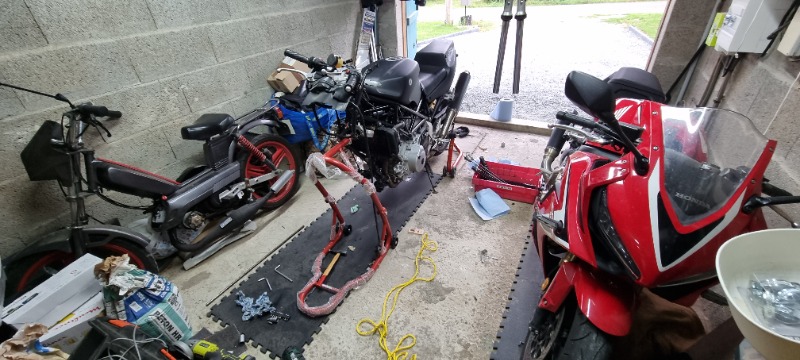 Bon il reste niveau partie cycle un joint de spi qui fuit enfin, c'est plus une fuite mais une cascade huile et les pneus a changer dégraissage des disques et plaquettes et elle pourra rouler