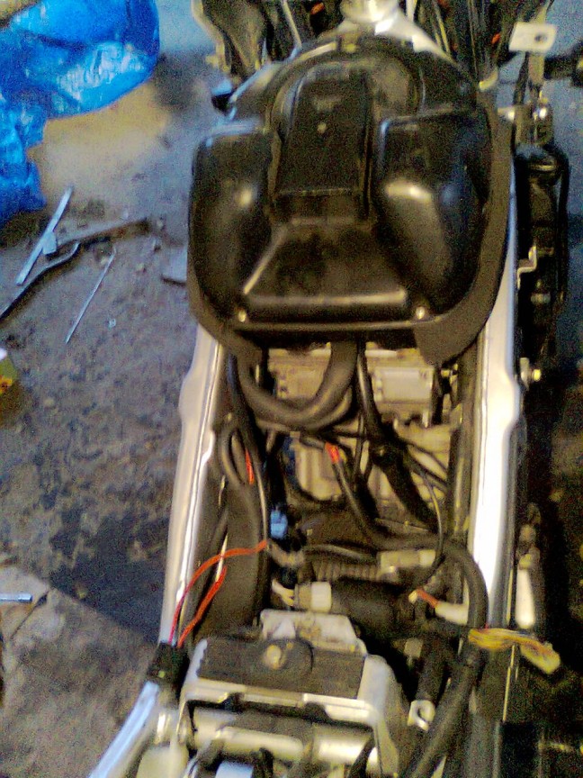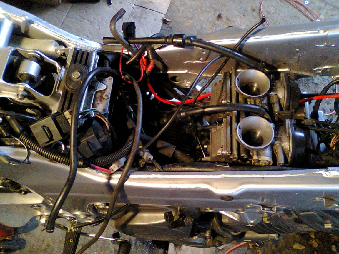 Branchements divers et variés de durites, tuyaux, câbles et autres machins genre carbus et filtre à air.