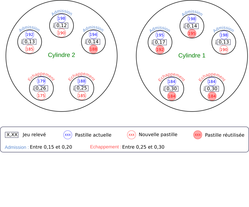 Ok pour 195.marlon écrit: Sur le cylindre 1, là où tu as 0,13, je mettrais une pastille de 195 au lieu de 190. Avec une 190 tu vas avoir 0,21.