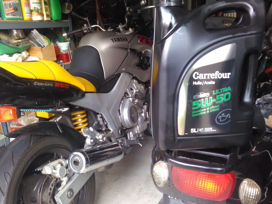 Pour faciliter le remplissage, laisse le bidon d'huile sur le radiateur de la maison (en cette saison), l'huile sera plus fluide, ce sera plus aisé