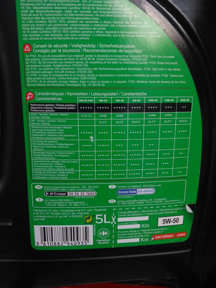Le seul soucis, c'est de retrouver cette huile carrouf 5W50...