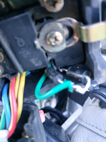 En prime, une photo de ma commande de clignotant, que j'ai modifiée pour faire un 'Warning', avec un bouton externe et 2 diodes (sur la photo)...