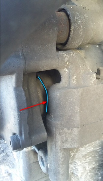 et sur la pompe, en cas de rupture de ce joint, tu as un trou d’évacuation qui se situe au niveau de ton trait bleu