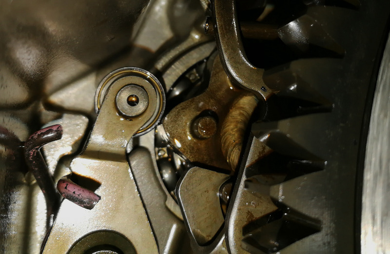 ci joint une photo du coupable, le cliquet du selecteur s'est creusé autour des pions du barillet et a pris du jeu sur le selecteur.