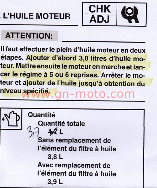 Tu fais chauffer ton moteur et tu contrôle le niveau avec le bouchon jauge