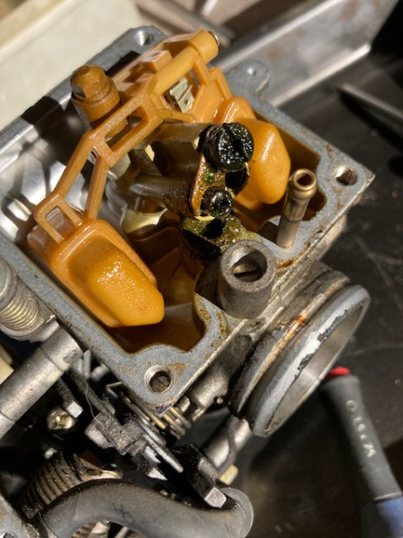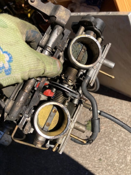 - probablement démontage des carbus, étant donné que de l'essence a stagné pendant 10 ans dedans.