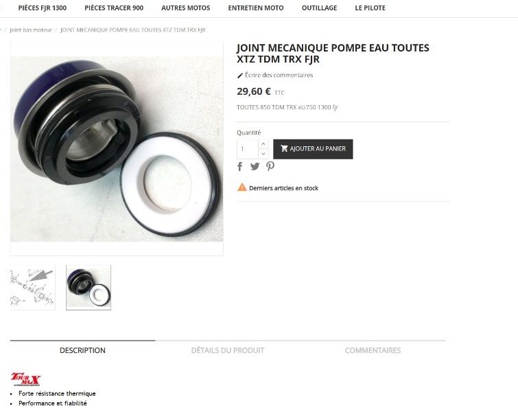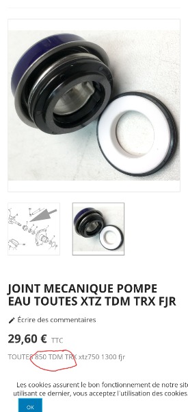 je viens de regarder sur le site GNM et j'ai trouvé le joint mecanique, mais j'ai un petit doute sur la description car en dessous du prix c'est écrit toutes 850 tdm (voir photo).