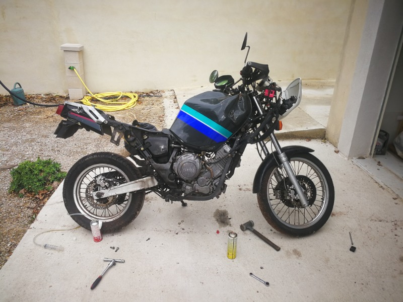 Je part donc d'une 750 xtz de 89 avec 79 000km au compteur acheté 100balles a un collègue de boulot qui pour la petite histoire a eu ses carbu révisé sur facture avec diverse autre choses (roulements etc..) et en rentrant de faire jeu au soupapes distri et encore d'autres chose qui lui laisse une facture de 800e, la moto tombe en rade. Il ne cherche pas plus loin jusqu'à qu'au boulot 3ans après je suis a côté de lui sur lbc a chercher ma nouvelle moto:un trail en bi !