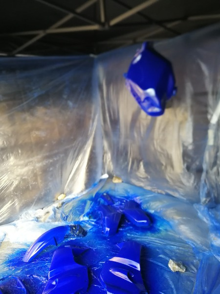 J'ai choppé un pistolet de sablage, une commande de polyurethane ral 5002 et du noir pour le cadre chez stardust color.