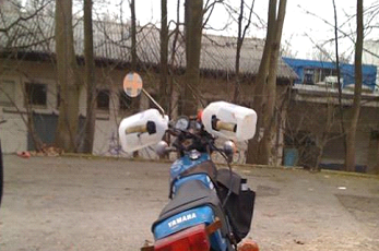 Plus sérieusement, les pare mains de BMW 1150 se montent, mais faut usiner les embouts de guidon (filetage à faire au centre).